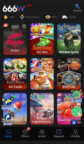 When you open the app, you will see the main dashboard with multiple game categories. Select a game, choose a room, and start playing.